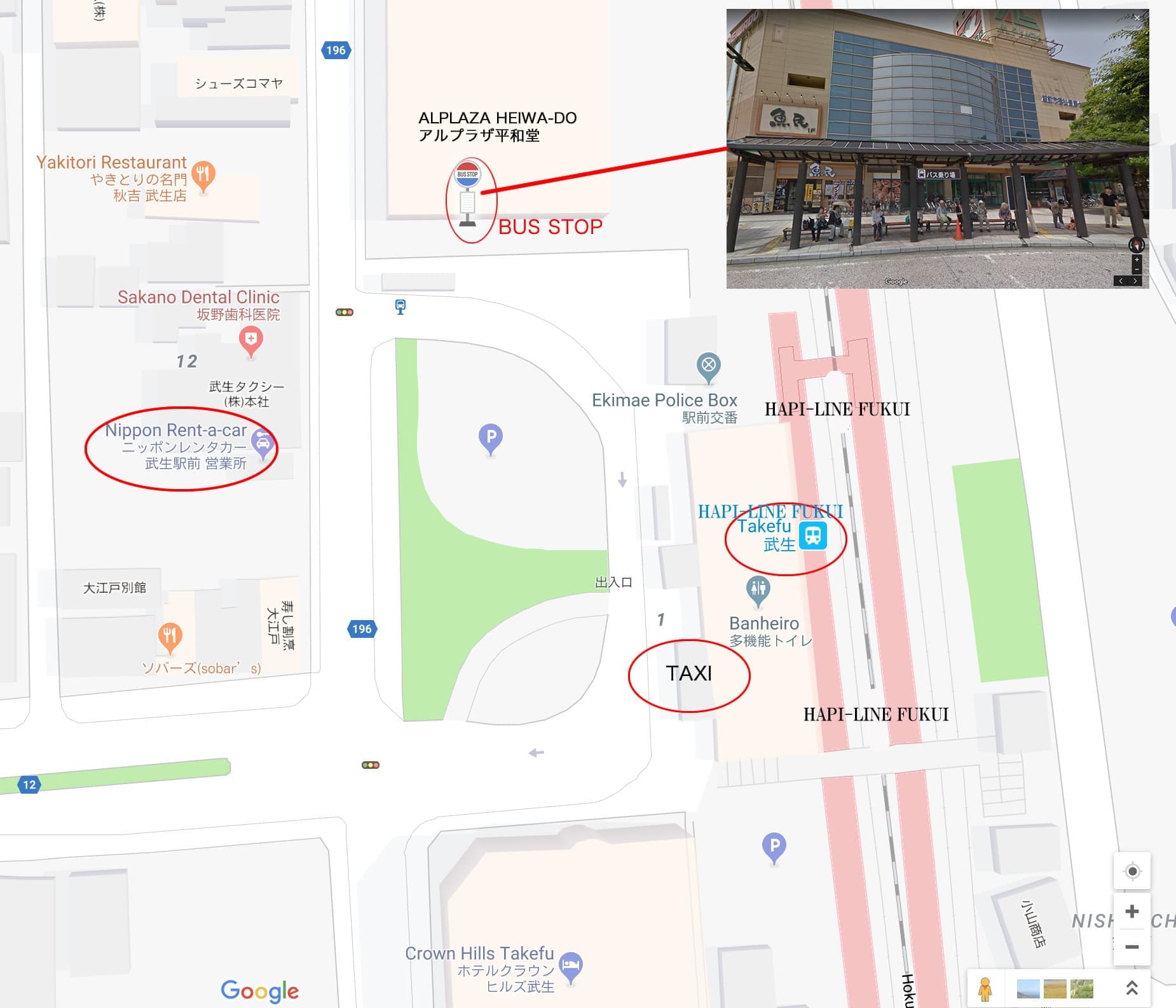 Travel times to HLFukui TAKEFU sta. :