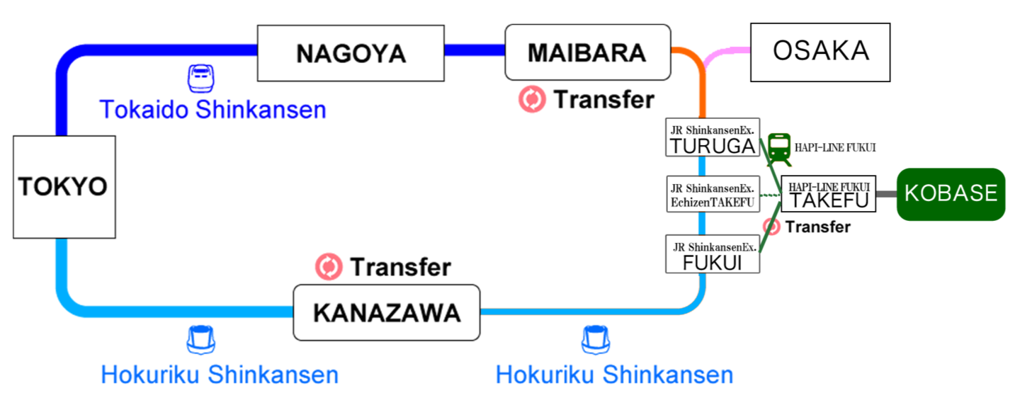 - · JR TOKYO ⇆ JR FUKUI sta. 3h40h (Hokuriku Shinkasen Exp)