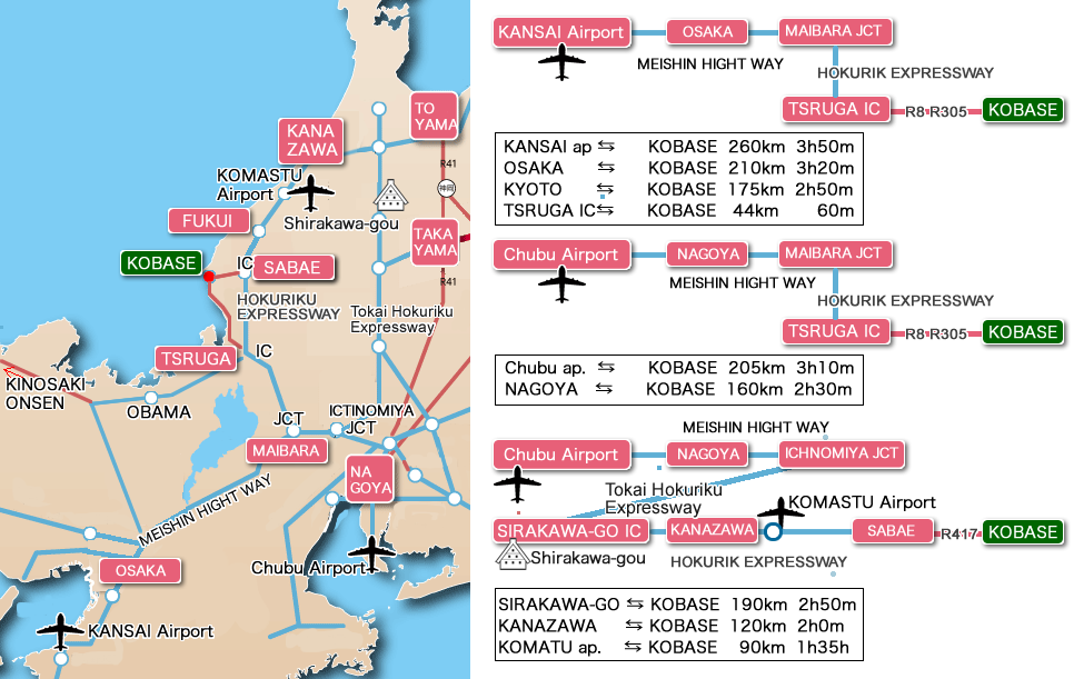 - · JR TOKYO ⇆ JR TSURUGA sta. 3h20h (Tokaido Shinkasen Exp)