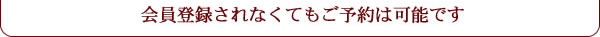 ●会員登録しなくてもご予約はできますが、会員登録されますと、次回からのご予約が容易になります。また、任意でお得情報などを受信することが可能となります。